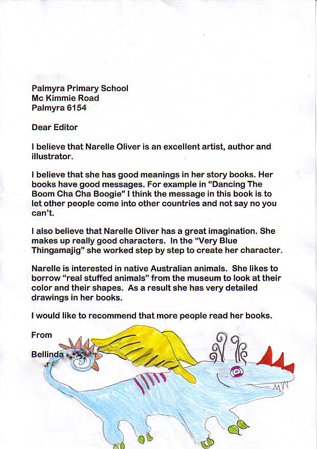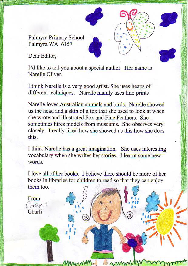 The students were enthusiastic about Narelle Oliver and her books, and wrote in to Alphabet Soup to tell us about the visit. We are pleased to share three of their letters with you!
