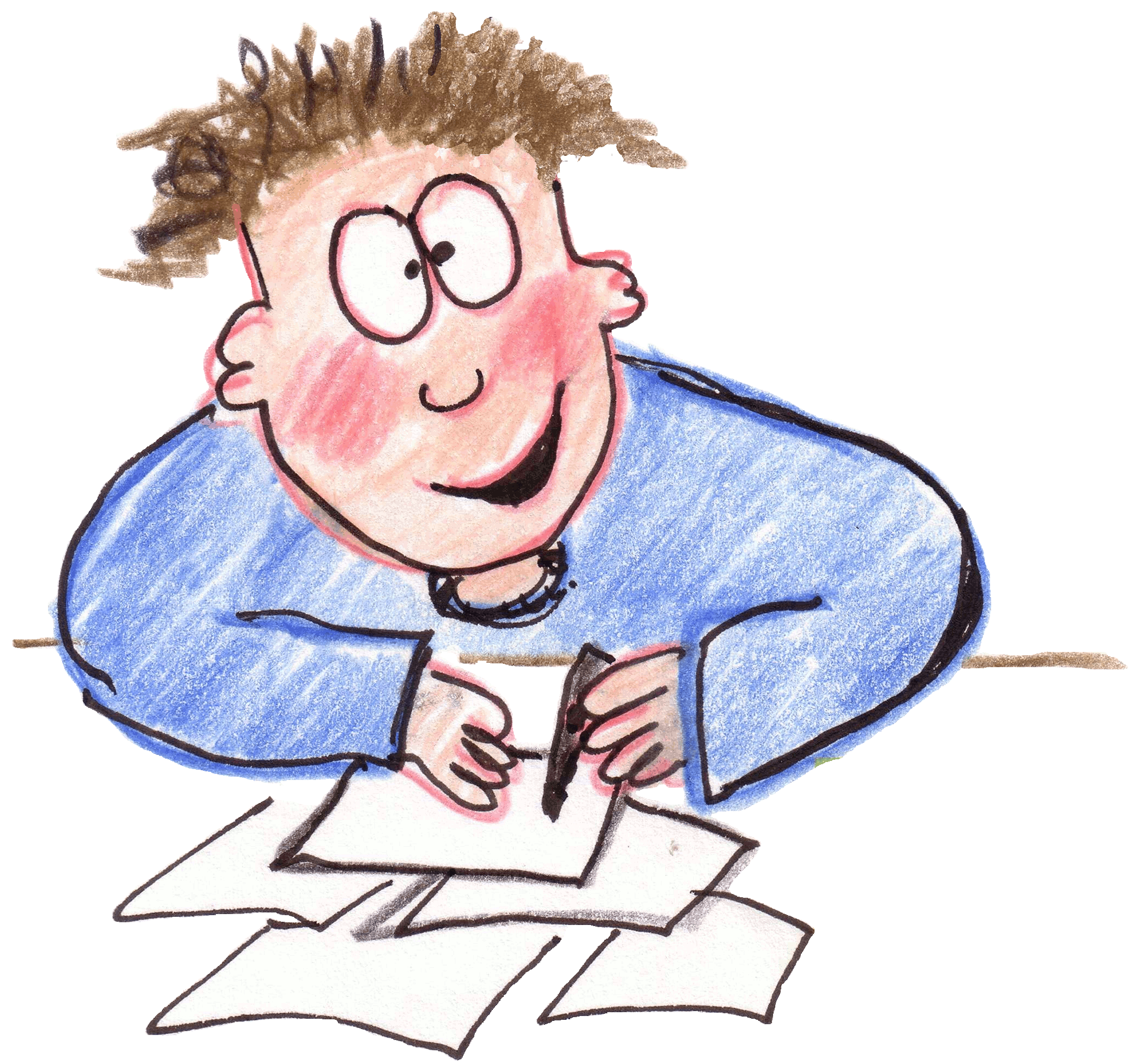 Greg and his wife Kate are Education Consultants and somehow Greg finds time to draw all the illustrations for the magazine as well! We send Greg pages from the magazine with just the text. He draws all his pictures on white paper and posts them to us. We can then scan his drawings and place them exactly where we want them on each page of the magazine (and enlarge or reduce them if we need to).